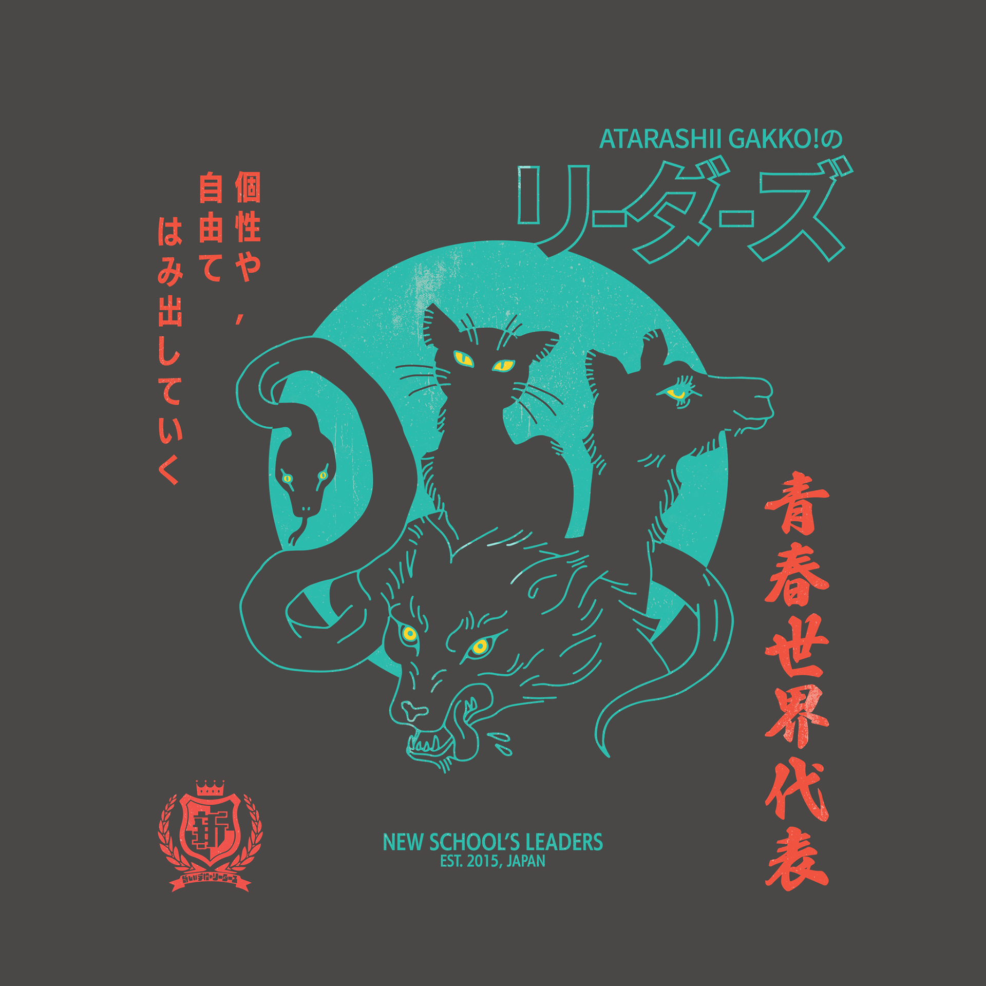 Merch design for 'ATARASHII GAKKO!', a Japanese music group (unofficial).